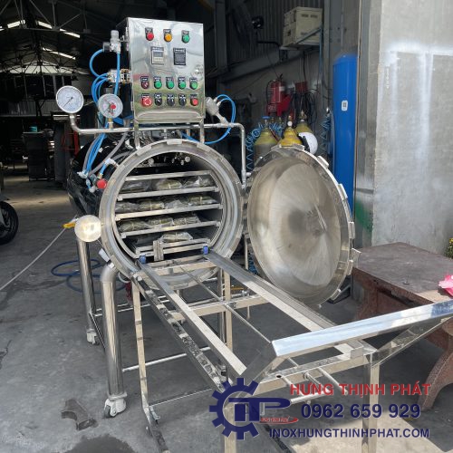 Tại Hưng Thịnh Phát, nồi hấp 300L được chế tạo bằng inox 304 100%, vận hành bằng hơi nước bão hòa áp suất cao, đảm bảo tiêu diệt đến 99,9% vi sinh vật, đạt chuẩn an toàn vệ sinh thực phẩm.
